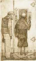 | taidegrafiikka: Talonpoika ja kuolema taivaan portilla |