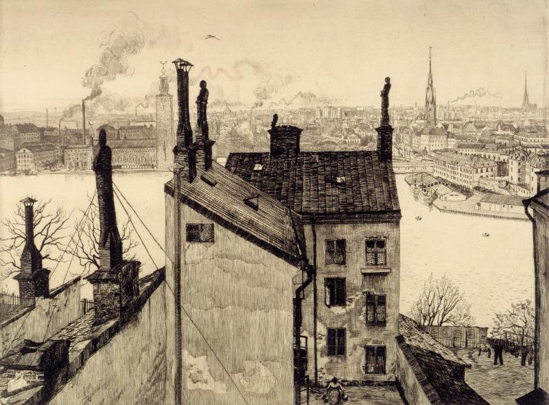 Näköala taiteil... kaupunkimaisema sekä ihmisen tekemät rakennukset osana maisemaa, savu |
