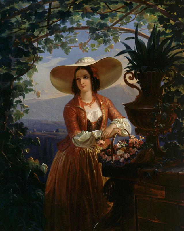 | maalaus: Kukkaistyttö Firenzestä ; Blomsterflicka från Florens |