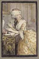 | maalaus: Kirjoittava nainen, luonnos maalaukseen Rokokoonainen |