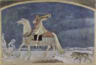 | asiasana | ornamentit, maisema, tähdet, lumi, ornamentiikka, Kullervo, taivas, hevonen, tuohitorvet, talvi, Kalevala, eläimet, koira, miekat |