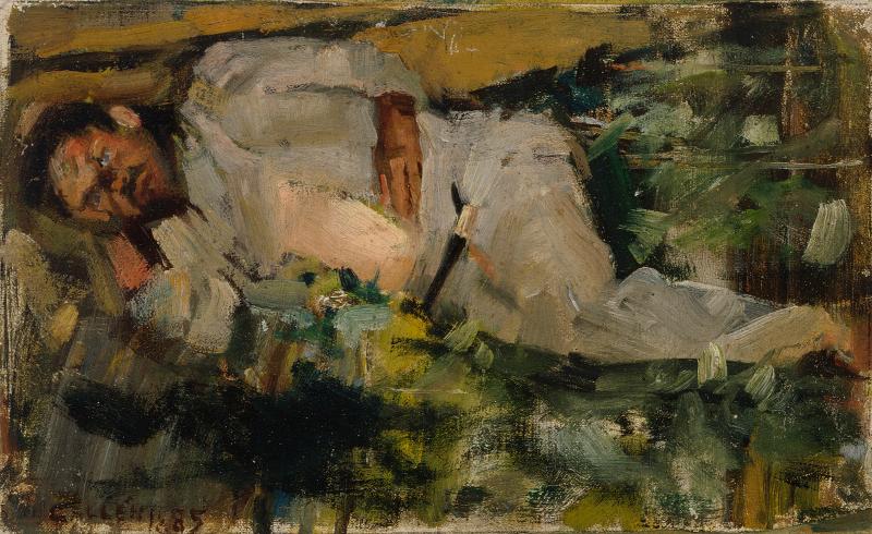 | huomiot | vas.alh.: GALLÉN 1885, takana: Kekki niminen renki Kärkisten torpassa Korpilahdella jossa vietin kesän, Pariisista palattuani ensi kerran. Kekki oli ennen ollut, ruoskiana, valtion virkamies nyt isäntänsä uskottu palvelia ja juomatoveri kun korpi-viinaa maistettiin. Ei koskaan työssä hikoillut vaan kovasti syödessä. |