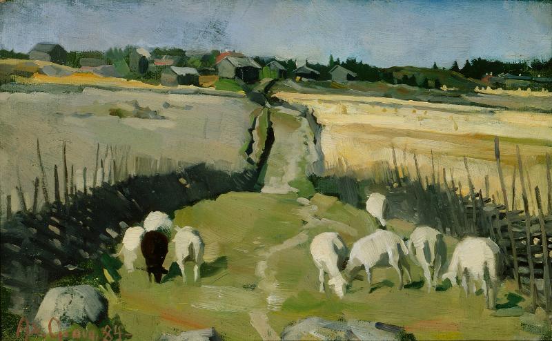 | asiasana | maisema, kivi, rakennukset, aita, niityt, lammas, Waenerberg-talo, eläimet, tiet |