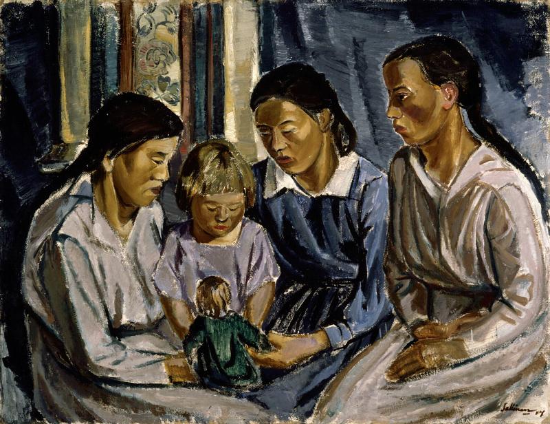 | asiasana | lapset (kooste), girl (child between toddler and youth), kuvat, lapsi, ryhmät, Seriousness, aikuinen nainen, sisters (second degree family relationships), istuva figuuri, nuket, ikkunaverhot, verhot, kauppias, (playing with) dolls, muotokuvat, tytöt |