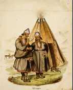 | maalaus: Kaksi tunturilappalaista kodan edustalla |