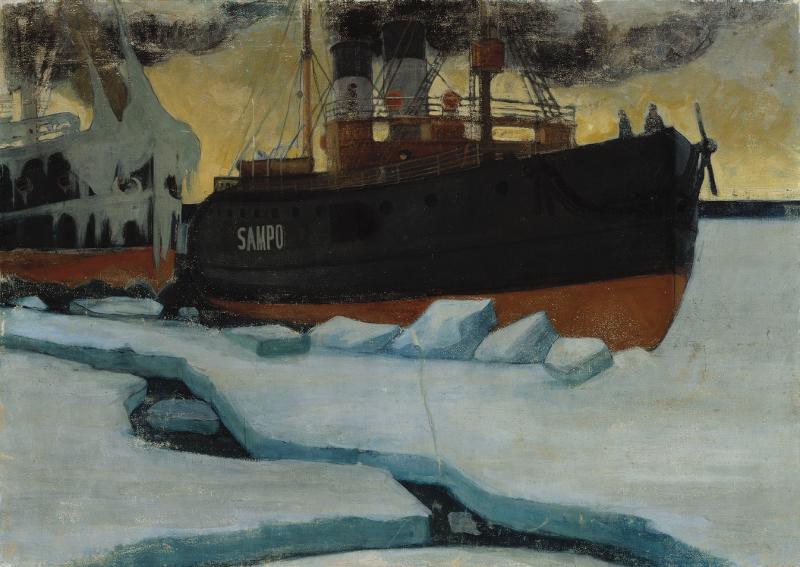 | maalaus: Jäänmurtaja Sampo. Tilaustyö Suomen paviljonkia varten Pariisin maailmannäyttelyyn 1900 |