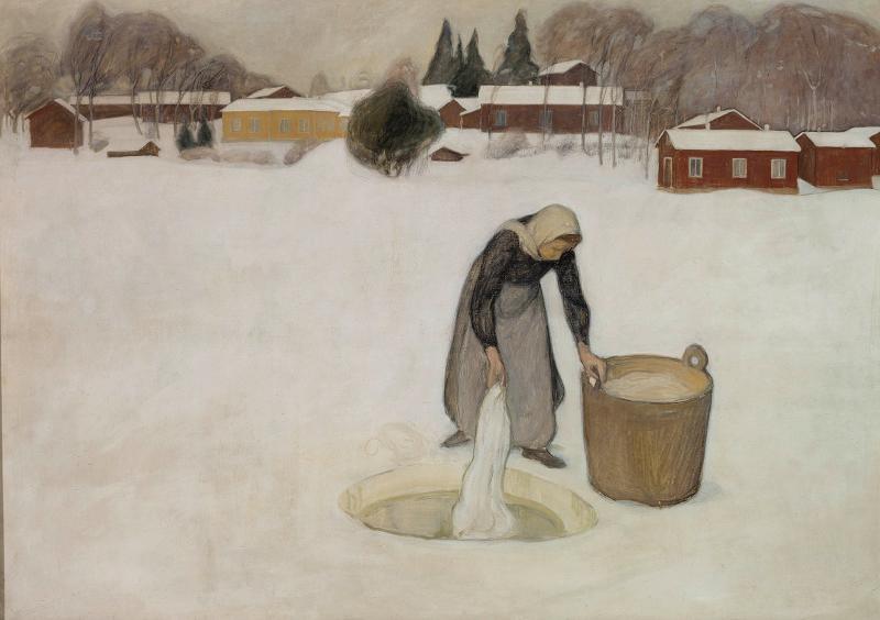 Keskustelutuoki... talvi; 'Inverno' (Ripa), kotityö, lumi, pyykinpesu, aikuinen nainen |