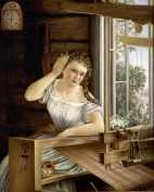 | maalaus: Hanna kangaspuiden ääressä ; Hanna vid vävstolen (STY:n 50-v.näyttelyluettelo 1896) |