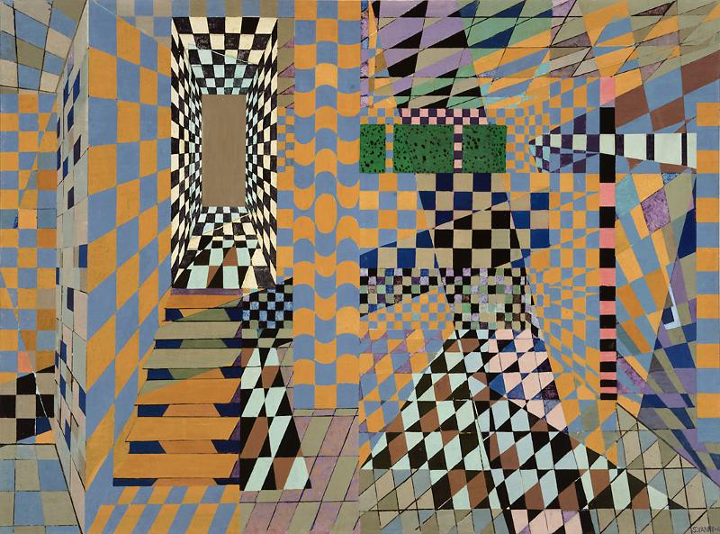 | asiasana | interiöörit, surreaalinen maisema, surrealistiset näkymät, staircase, nelikulmio (~tasogeometria, geometria), portaat |