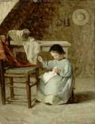 | maalaus: Ompeleva tyttö |