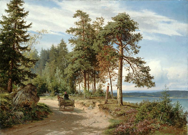 | asiasana | järvet, tie, polku, maisema, naiset, eläimen vetämä kulkuväline (vaunut, rattaat jne.), järvi, lampi, metsä, kuormat, aikuinen nainen, kesä; 'Estate' (Ripa), tiet |