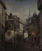 | maalaus: Katu Quimperissä Bretagnessa, yökuva |