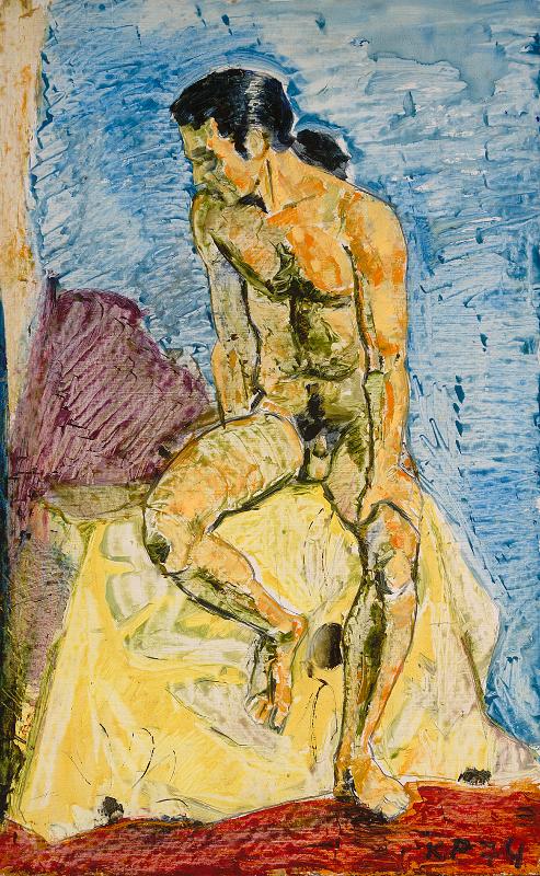 nimetön taiteilija (yleensä) työskentelemässä alastonmallin mukaan, malli, istuva figuuri |