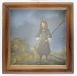 | maalaus: Metsästäjä (Kaarle XI?) koirineen |