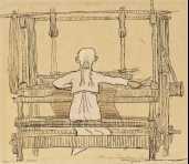 | piirustus: Kangaspuiden ääressä |