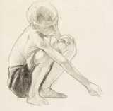 | piirustus: Hiekkaan piirtävä poika, harjoitelma "Leikkiviä poikia" -teokseen |