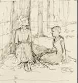 | piirustus: Sommitteluharjoitelmia teokseen Koivujen alla |