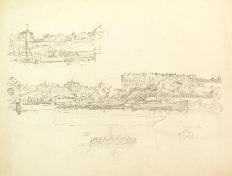 | asiasana | not 48-1160403107136, vesinäkymät, kerrostalot, satamat, laiva (yleensä), rannikko, ranta, kaupunki; 'veduta', taide, torni tai linna maisemassa |