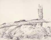 | piirustus: Kivi ja katkennut puu |