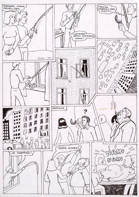 | piirustus: nimetön (päivällisen onkiminen) |