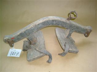 Kaareva puuosa, jonka päissä rautatapein kiinnitetty rautalenkit. Kaarevaan osaan kiinnitetty puunauloin ja liitoksin kaksi suorakaiteen muotoista puulevyä "tyynyä", joissa kiinni nahkaremmit. Kaarevan osan päällä rautainen pyöreä koristeltu lenkki.