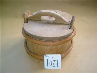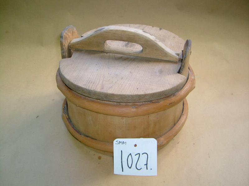 Kautovaara, Pekka: Kättentöitä, Keuruu; Otava 2002.; Merkit: Pohjassa: kirjain, joka W ja X:n yhdistelmä, josta alas lähtee risti.; Vauriot: Halkeamia.; Lahjoittaja: Esteri (Mäkisepän tila) Koivisto; Lisatiedot: Erillisistä laudoista eli kimmistä kootut puuastiat olivat ennen yleisiä. Kimpiastioiden tuli olla vesitiiviitä. Kimpilaudat tuli muistaa halkoa puun sydämeen päin tai astia aikaa myöten halkeilee. Tehdessä astian sisäpuolelle laitetaan tukki, joka pitää laudat pystyssä kiinnityksen ajan. (Kautovaara 2002, 115-117.)