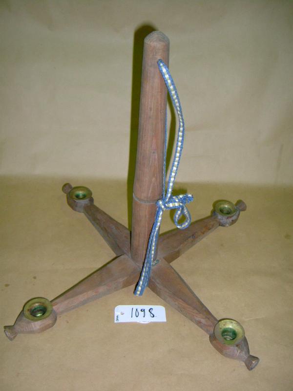 2 lomittain olevaa, ristiin menevää, vaakasuorassa olevaa puuta. Puut kapenevat kärkeä kohti ja niiden päät ovat soikean malliset tapilliset. Päihin upotettu messinkiset kupit, joihin kynttilät tulee. Vaakasuorassa olevien puiden läpi tulee pystypuu, joka pohjapuolella päättyy vaakatappiin. Pystypuun kärjen läpi menee reikä, josta pujotettu sinivalkea naru. Pystypuussa kulkee poikkiraita.