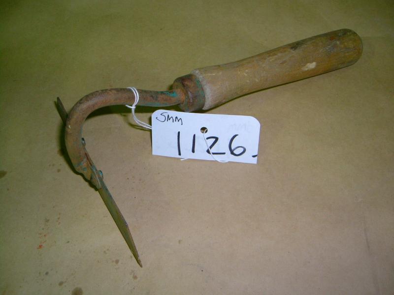 Lyhytvartinen. Puusta tehty lakattu varsi, joka hieman kapeampi keskeltä. Terä on litteä, päistä viisto ja siniseksi maalattu. Terä kiinnittyy varteen kaarevan raudan avulla.