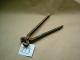 Tasakärkiset tonget, puoliskot kiinnitetty toisiinsa pultilla. Maalaamattomat.