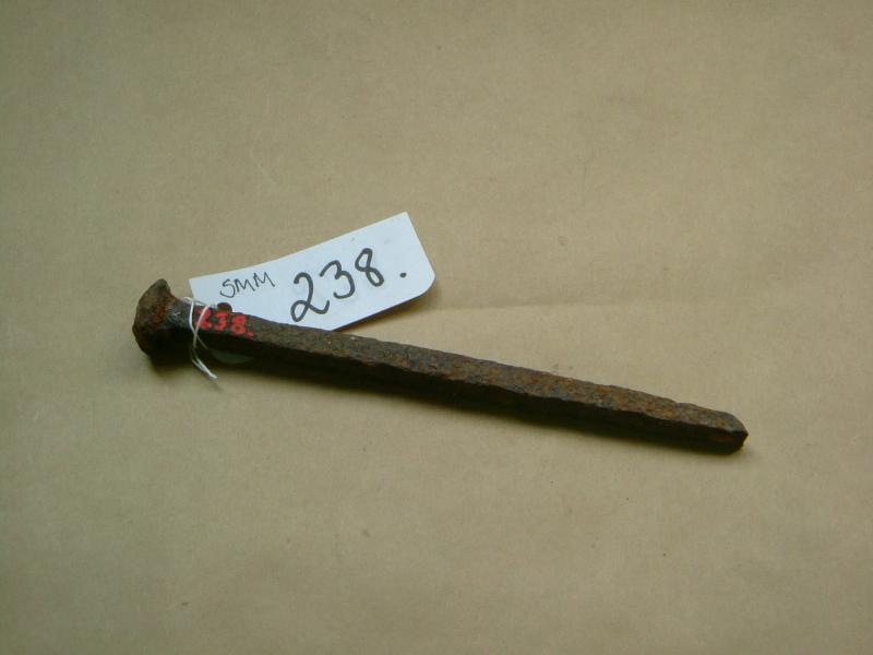 | huomiot | Viiteet ja lähteet: Muistio lahjoituksesta.; Vauriot: Ruostetta; Lahjoittaja: Helga Sandell; Valmistus: Todennäköisesti Alvi Sandellin tekemä kotiahjossaan.; Lisatiedot: Esineet 209.-219. ja238.-258. kuuluvat samaan kokonaisuuteen, joka on kerätty Alvi Sandellin kotitarvepajasta. |