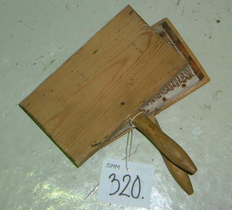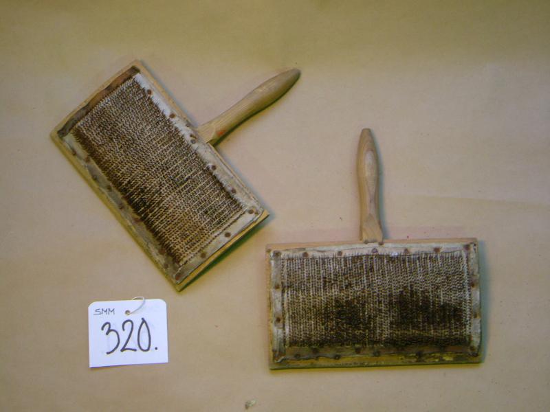 | huomiot | Viiteet ja lähteet: Lahjakirja 15.5.2002, nro 23. Vuorela, Toivo: Kansanperinteen sanakirja. Porvoo 1981. Rokka Pekka, Järnfors Leena, Nieminen Matti: Perinne kirja, Muurikkala: Visionääri Oy 1998.; Vauriot: Ruostetta; Lahjoittaja: Jouko Kuisma; Valmistus: Käsityönä valmistettu tai kotitekoinen.; Lisatiedot: Kehruuvillat karstataan karstoilla hahtuviksi eli lepeiksi. Kaksin käsin vedettävillä penkkikarstoilla suoritetaan villojen esikarstaus eli pöyhöttäminen, minkä jälkeen villat nypitään ja käsitellään käsikarstoilla. (Vuorela 1981, s. 145) Lampaat kerittiin 2-3 kertaa vuodessa. Syksyllä keritty villa oli parasta. Lampaat joko pestiin ennen keritsemistä tai sitten keritty villa pestiin. Tämän jälkeen villa karstattiin. Karstaus oli naisten työtä. Karstoilla villa pehmitettiin ja puhdistettiin, villan paakut saatin pois ja kuidut asettuivat saman suuntaisiksi. Työ piti tehdä kunnolla, jotta saatiin tasaista laatua. (Rokka, Järnfors, Nieminen 1998, 82.) |