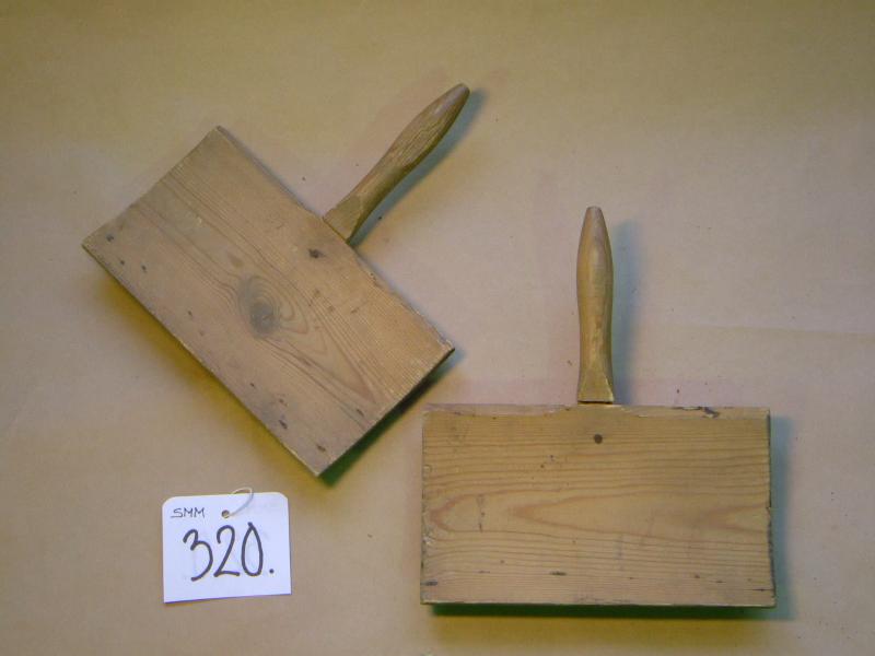 Karstat (2 kpl), joissa kummassakin laudasta valmistettu lapa sekä puinen varsi. Laudat on taivutettu kaareviksi ja ulkokaaren puolelle on kiinnitetty tiivis piikkimatto (metallipiikin p=n. 1 cm). Piikkimaton reunoilla nahkasuikaleet, jotka on naulattu kiinni lautoihin.