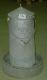 Pellistä valmistettu lieriö, jonka yläreunat on taivutettu aalloille ja hieman sisäänpäin. Lieriön pohjalle (keskelle) on kiinnitetty pellistä valmistettu kartio. Lieriön sisällä toinen lieriö, joka on kapeampi ja korkeampi. Sisempi lieriö seisoo neljällä jalalla, jalkojen alapuolella avointa tilaa. Kahva kantamista varten. Irroitettava kartion mallinen kansi, jonka päällä koukku. Sinkitty.