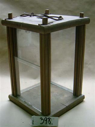 | huomiot | Viiteet ja lähteet: Eeva Mikolan muistio lahjoituksesta 11.9.2001; Vauriot: Yksi lasilevy puuttuu, ruostetta; Lahjoittaja: Esteri (Mäkisepän tila) Koivisto; Valmistus: Kotitekoinen tai käsityönä valmistettu |