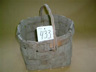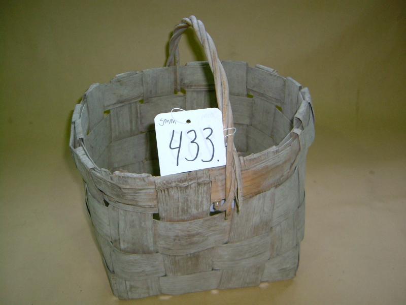 Kuution mallinen päreistä punottu kori, jossa kiertämällä punottu kahva. Korin sisäpinnalla ja kahvassa kuivunutta savea tai multaa. (ollut ilmeiseti mukana pellolla).