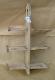 Puinen, suorakaiteen muotoinen, pystypäin oleva lauta, jonka toinen pää veistetty renkaan muotoiseksi ja siihen tehty iso reikä keskelle. Laudan läpi menee kolme puista, leveää "ritilää". Ritilät on tehty neliön muotoisista puukapuloista, joiden päät on ohennettu. Jokaisen ritilän päihin on lyöty paksummat puukapulat, jotta teline pysyy paremmin kasassa. Yksi kapuloista on lähtenyt irti. Muutama sidottu kiinni narulla.