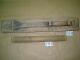 Pitkähkö puinen koristeltu lauta, jossa toisessa päässä kädensija. Kädensijaa on pyöristetty ja sen toiseen päähän on tehty kaareva kuvio. Kahvasta lähtee laudasta kohollaan oleva kapea puuosa, joka päädystä kolmionmallinen ja ylöspäin nouseva. Osaan kaiverrettu W: 1843 E.H.S. Laudan toisessa päässä on kaiverrettu 8-lehtinen kukkakuvio, toisessa päässä on auringonkehää muistuttava kuvio, jossa ympyrän sisäällä pieni ympyrä, josta lähtee säteitä. Ison ympyrän ympäri tehty kolmioita. Laudan ympäri kaiverrettu kolmioista sahalaita kuvio, sisempänä kulkee ympäri toinen lovimainen kuvio