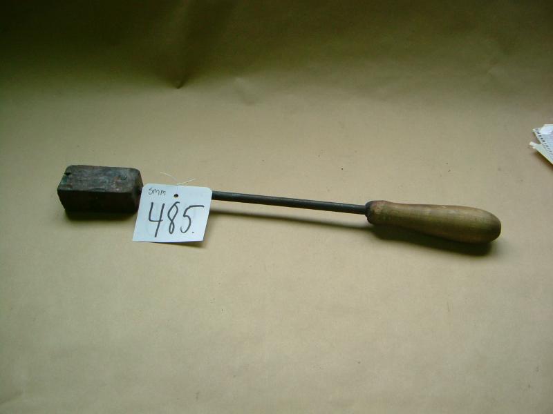 Sorvaamalla tehty puinen kädensija, joka pyöristetty ja alaspäin levenevä. Kädensijasta lähtee rautaputki, jonka toisessa päässä rautainen suorakaiteen muotoinen osa. Päässä kirjaimet YA, jotka polttaessa merkin lehmään kääntyneet kirjaimiksi AY.
