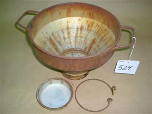 | huomiot | Viiteet ja lähteet: Eeva Mikolan muistio lahjoituksesta 15.5.2002 Rokka Pekka, Järnfors Leena, Nieminen Matti: Perinne kirja, Muurikkala: Visionääri Oy 1998.; Merkit: F.E. Wahlroos oy 6; Vauriot: pahasti ruosteessa; Lahjoittaja: Jouko Kuisma; Lisatiedot: Ennen lehmät lypsettiin ennen kahdesti päivässä. Lypsyastia tyhjennettiin siivilän läpi korvoon tai tonkkaan. Maatiloilla oli usein maitoaitta tai -kamari, jossa maidon käsittelyssä tarvittavaa välineistöä säilytettiin ja huollettin. (Rokka, Järnfors, Nieminen 1998, 50.) |