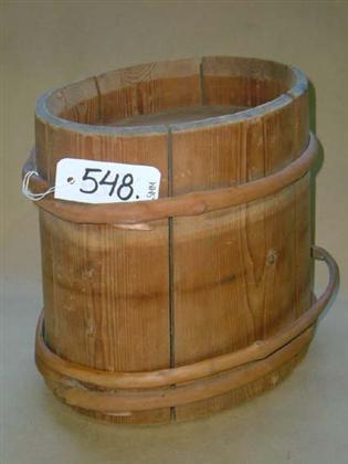 Soikea kimpiastia, ylöspäin kapeneva. Kannessa ilmareikä ja kaatoaukko laidan vieressä. Astian ympärillä kolme vitsaksesta tehtyä vannetta, joista yksi on irti.