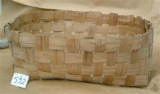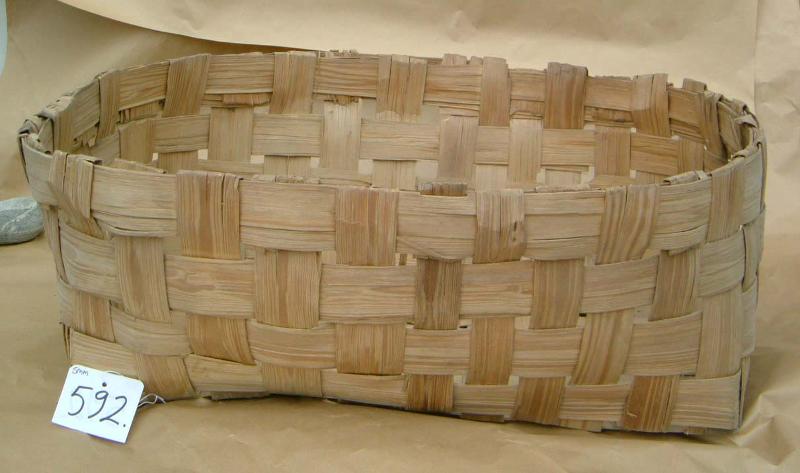 Korin pohja muodostaa suorakaiteen, ylälaita on soikeahko. Maalaamaton. (Päreestä punottu iso kori, jonka pohja on neliömäinen. Kori on korkea ja sen vastakkaisilla reunoilla on kaksi kantokahvaa. T.I.)