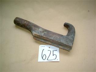 Ruskeaksi maalattua puuta (koivua). Esine on veistetty yhdestä puusta. Terä on kiinnitetty naulojen avulla uraan, joka on sahattu suorakaiteen muotoisen osan pohjaan. Toisessa päässä runko jatkuu pyöristettynä kädensija. Sahan yläpuolella etupäässä on pyöristetty ylöspäin nouseva ja taaksepäin taipuva sarvenmallinen kädensijana.