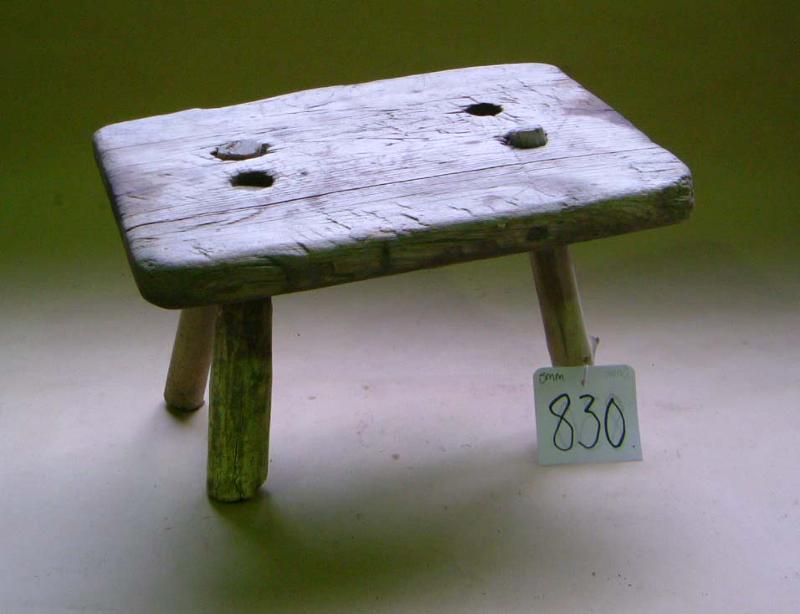 Suorakaiteen mallinen penkkiosa on yhdestä puusta. Penkissä ollut 4 jalkaa, jotka tulleet penkin läpi istuin puolelle. Yksi jaloista on lähtenyt irti.
