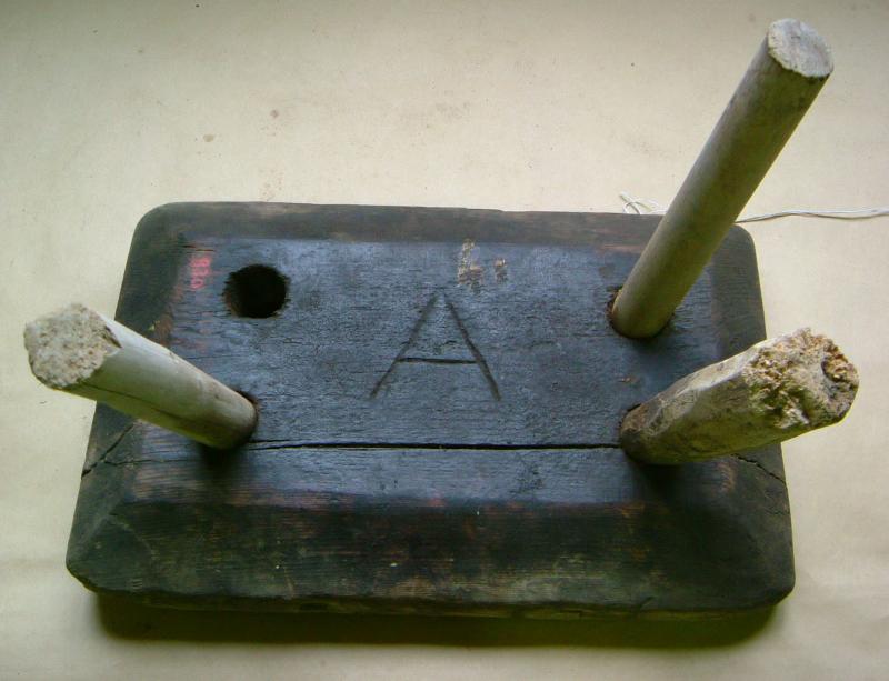 Lahjakirja nro 66.; Merkit: A (pohjassa); Vauriot: Pohja mustunut, jalka puuttuu, halkeillut.; Lahjoittaja: kuolinpesä Heikkilä, Saara ja Pauli; Valmistus: Pohjassa oleva A kirjain on ilmeisesti tekijän puumerkki.