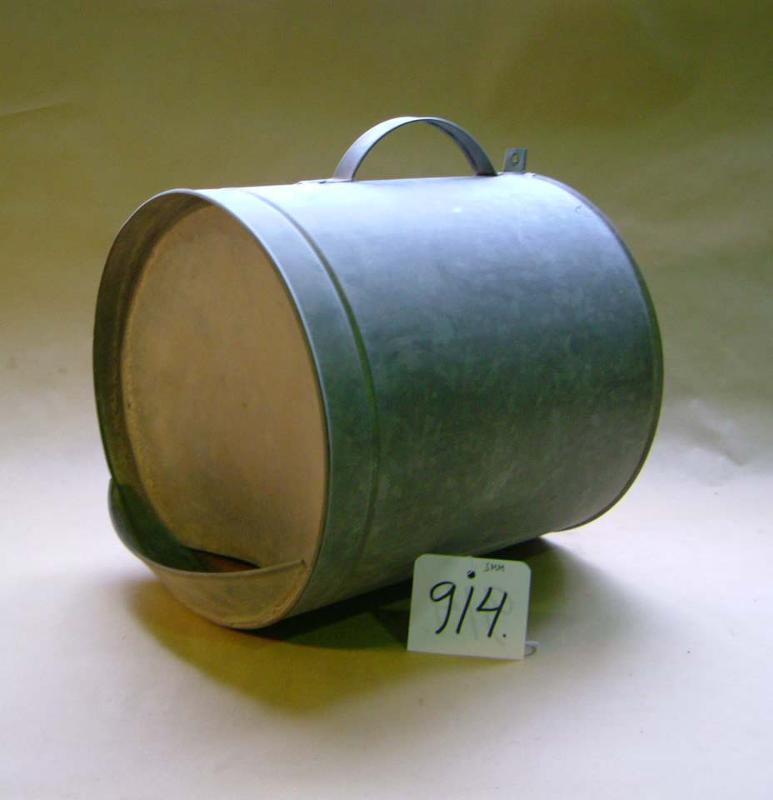 Pellistä tehty lieriön mallinen astia. Takana yläreunassa on pieni ripustuskoukku. Päällä on kahva. Etupää on alhaalta avoin. Reunat jatkuvat vielä päädyn ohi niin, että aukon eteen muodostuu pieni allas.