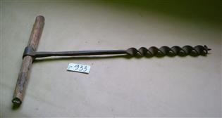 Metallinen kierteinen terä. Toinen pää muodostaa lenkin, jonka läpi puinen kädensija on työnnetty.