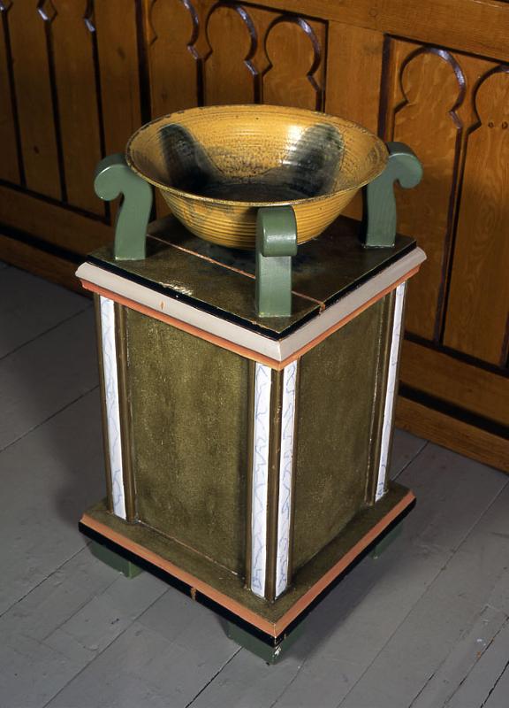| diapositiivi: Askolan kirkon kastemalja ja -teline |