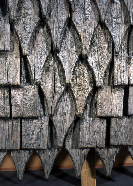 Yksityiskohta kirkon paanukaton fragmentista.