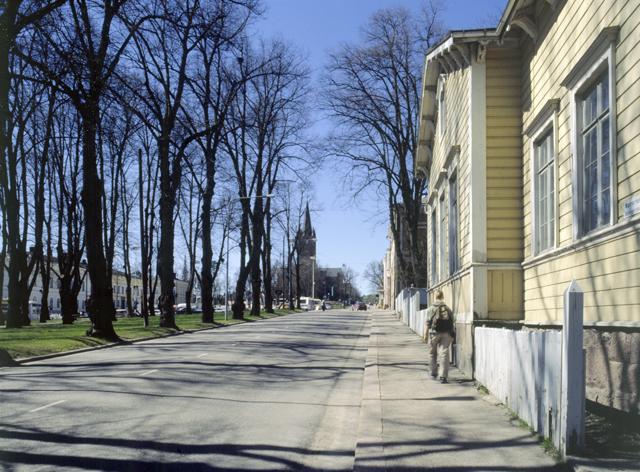 Esplanadi idästä, tien päässä kirkko.