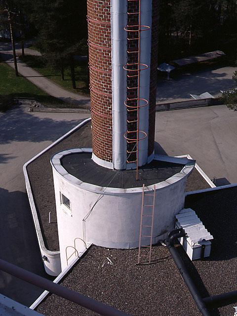Parantolan savupiipun juuri, tikkaat ja kattoa. Funktionalismia.